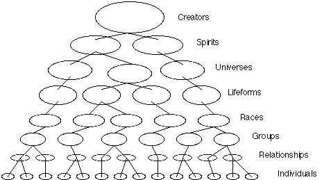 What becomes interesting for the purpose of processing is to see how beings fit into this picture. Some systems of thought regard a spiritual being as a totally independent, self-determined unit that can be full cause. But that makes it a bit puzzling to figure out how such a being gets into trouble and how she interacts with other beings who are also fully independent. It might be more satisfactory to adopt some of the Holarchy/Holon model.