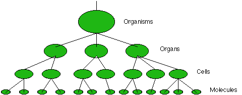 Holarchy is a word coined as a combination between the Greek word 'holos' meaning whole and the word 'hierarchy'. Here is an example of a Holarchy, taken from biology: